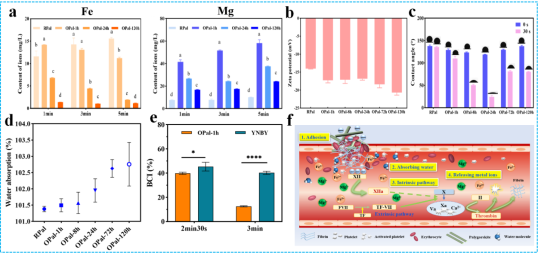 為進一步探究止血機制,研究人員分析了草酸梯度溶蝕凹凸棒石中金屬離子變化、表面電荷和親疏水性等理化性能。