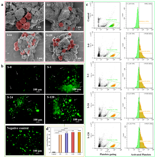 因此,通過研究紅細胞在混維凹凸棒石黏土表面黏附和血小板激活情況,結(jié)合黏附紅細胞數(shù)量、形態(tài)和血小板活化率,進一步證實了S-1具有最佳的止血性能。