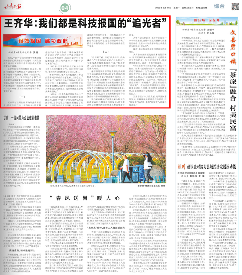 【甘肅日?qǐng)?bào)】報(bào)效祖國(guó) 建功西部——王齊華:我們都是科技報(bào)國(guó)的“追光者”