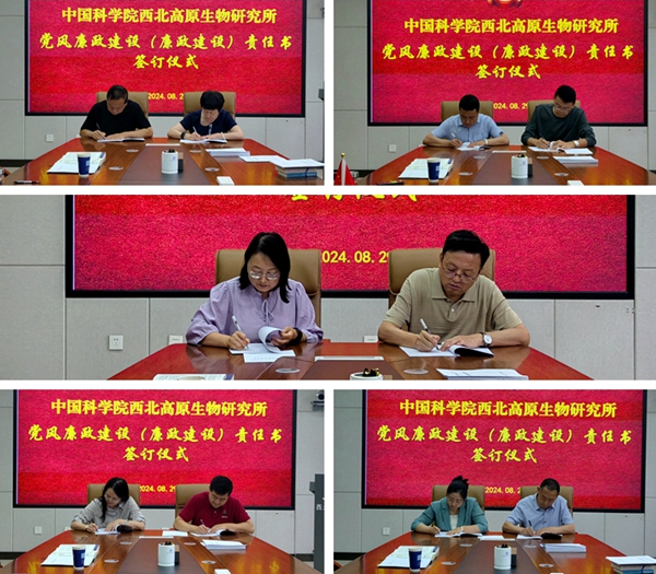 為貫徹落實黨中央、中國科學(xué)院黨組關(guān)于黨風(fēng)廉政建設(shè)責(zé)任制的工作部署和要求,明確領(lǐng)導(dǎo)班子及其成員、各部門負責(zé)人、學(xué)科團組組長、關(guān)鍵崗位人員在黨風(fēng)廉政建設(shè)中的責(zé)任,加強全所黨風(fēng)廉政建設(shè),8月29日上午,中國科學(xué)院西北高原生物研究所舉行《黨風(fēng)廉政建設(shè)(廉政建設(shè))責(zé)任書》(以下簡稱“責(zé)任書”)簽訂儀式,會議由黨委副書記王萍主持。