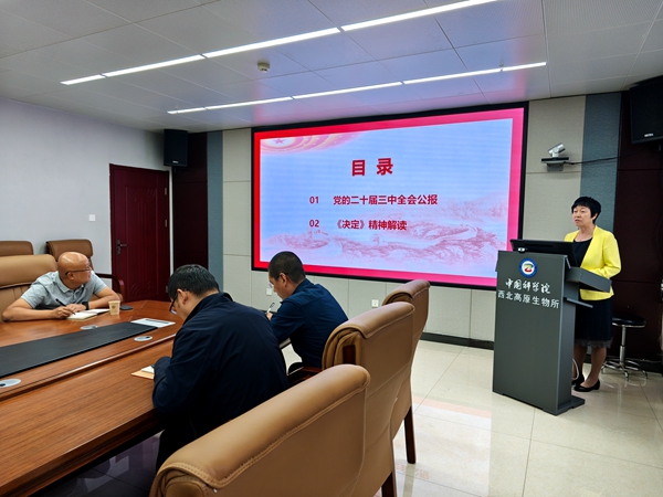 9月29日下午,中國科學院西北高原生物研究所召開黨委理論學習中心組第四次學習會,會議主題是深入學習貫徹黨的二十屆三中全會精神和院2024年夏季黨組擴大會議精神。西北高原所黨委理論學習中心組成員參加會議。會議由所長、黨委書記陳世龍主持。