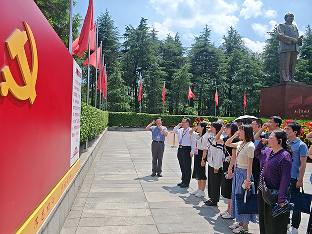 開班式當天,全體學(xué)員聆聽了中共湖南省委黨??粕缃萄胁恐魅瓮跷到淌谥髦v的專題課程《不斷提高政治判斷力、政治領(lǐng)悟力、政治執(zhí)行力》,深入學(xué)習(xí)“政治三力”的科學(xué)內(nèi)涵、戰(zhàn)略意義和提升路徑。大家來到韶山毛澤東廣場,懷著崇敬之情向毛澤東銅像敬獻花籃,并在鮮紅的黨旗下重溫入黨誓詞,鏗鏘誓言彰顯了傳承革命精神、踐行初心使命的堅定信念。隨后,大家參觀了毛澤東同志故居和《中國出了個毛澤東——毛澤東生平業(yè)績陳列》,系統(tǒng)回顧了毛澤東同志為黨和人民事業(yè)不懈奮斗的光輝歷程。當晚,學(xué)員們還觀看了大型情景劇《最憶韶山?jīng)_》,深刻領(lǐng)悟毛澤東同志心系群眾、為民擔(dān)當?shù)纳詈袂閼选?/span>