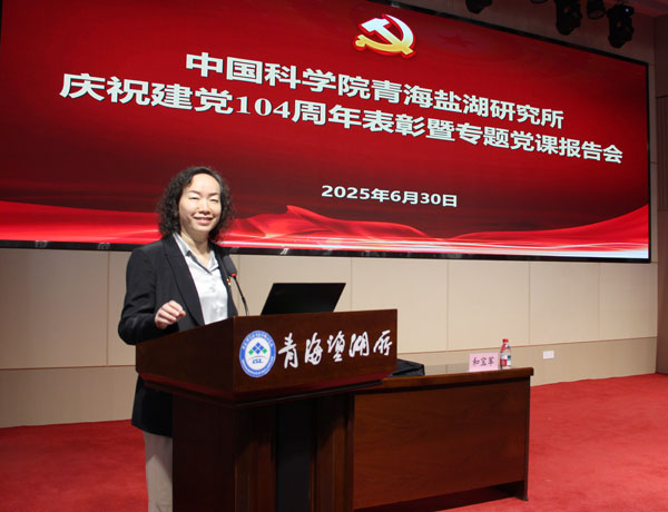 為慶祝中國共產(chǎn)黨成立104周年,進一步增強中國科學(xué)院青海鹽湖研究所各級黨組織的凝聚力、戰(zhàn)斗力和創(chuàng)造力,增強廣大黨員的榮譽感和責(zé)任感,6月30日,青海鹽湖所舉辦慶祝建黨104周年表彰暨專題黨課報告會。所領(lǐng)導(dǎo)、所黨委委員、全體職工黨員和研究生黨員參加會議。黨委副書記、副所長王建萍主持會議。