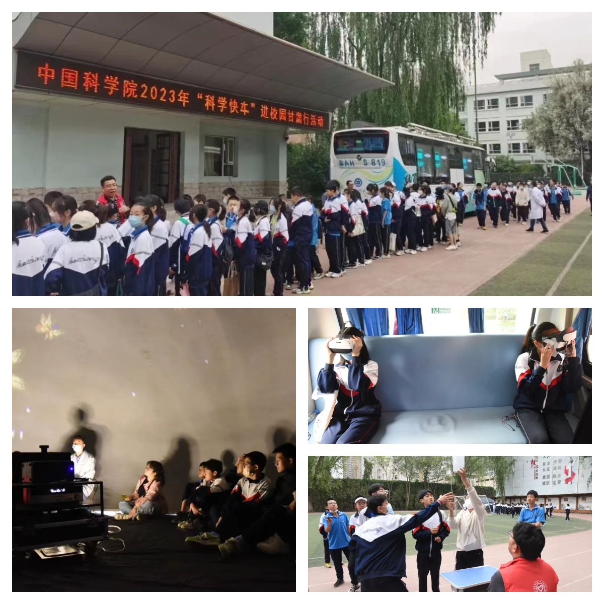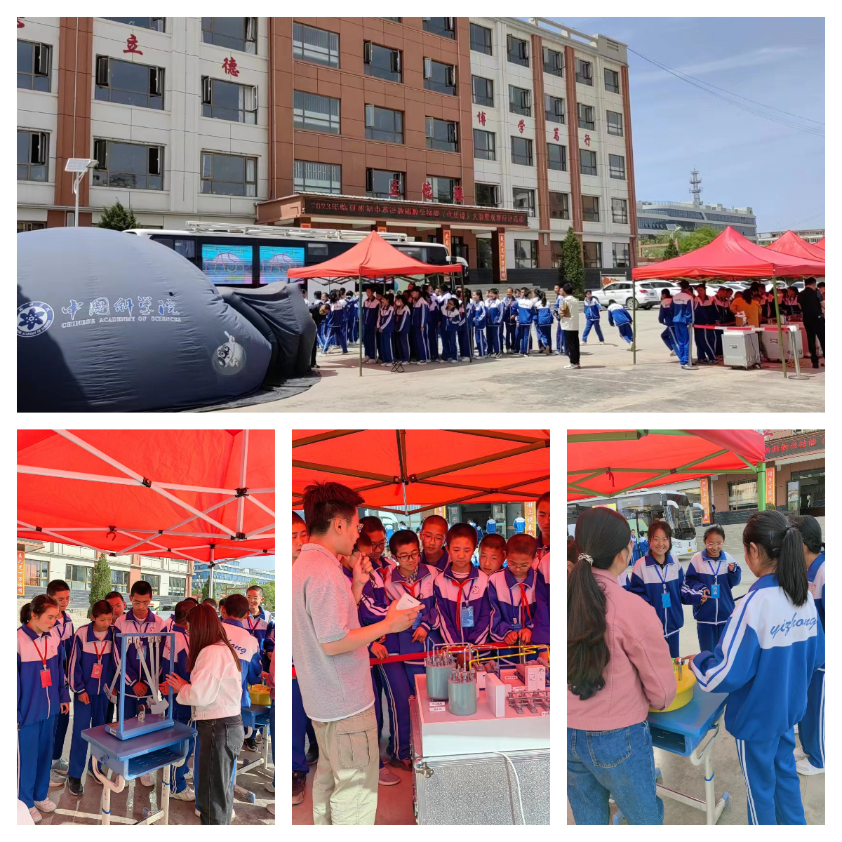 在為期七天的活動(dòng)中,“科學(xué)快車”以球幕影院、車廂內(nèi)互動(dòng)展廳、戶外可移動(dòng)展區(qū)等多種形式向同學(xué)們展示了中科院近年來(lái)重大創(chuàng)新科技成果,通過(guò)豐富多彩的展品、利用沉浸式環(huán)境和交互式手段,讓青少年在參與和互動(dòng)中體驗(yàn)到神奇的科技世界:在球幕影院,360度球幕科普微電影讓同學(xué)們直觀感性體驗(yàn)了科學(xué)探索太空、科學(xué)和諧自然、科學(xué)服務(wù)人類,領(lǐng)略了神奇的科技魅力,激發(fā)了偉大的科技?jí)粝耄蚰挥霸翰粫r(shí)傳出孩子們的驚嘆與歡笑聲;在車廂內(nèi)互動(dòng)展廳,深空、深海、深地和深藍(lán)四個(gè)領(lǐng)域的科研成果深深吸引了同學(xué)們的眼球,他們有的小聲地與身邊的伙伴交流著,有的聚精會(huì)神地閱讀展板上的介紹文字,特別是當(dāng)同學(xué)們帶上VR眼鏡時(shí),可身臨其境的體驗(yàn)“深海探險(xiǎn)”,孩子們歡呼雀躍、意猶未盡;在戶外可移動(dòng)展區(qū),通過(guò)科普志愿者的精彩講解,同學(xué)們近距離觀察了中國(guó)空間站互動(dòng)模型、天地一體化量子信息通信網(wǎng)絡(luò)樣機(jī)模型、智能制造機(jī)械臂模型、大型低溫制冷裝備模型、人工合成淀粉模型和人造太陽(yáng)裝置模型等近年來(lái)中科院重大創(chuàng)新成果的模型展品,并且親自體驗(yàn)了“會(huì)跳高的珠子”、“磁阻尼演示儀”和“溫柔的電擊”等互動(dòng)性強(qiáng)的科普展品,加深了對(duì)相關(guān)科學(xué)原理的認(rèn)知。
