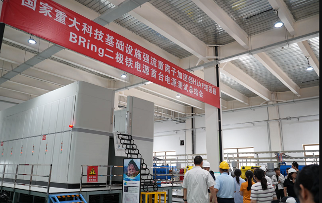 7月7日,國家重大科技基礎(chǔ)設(shè)施強(qiáng)流重離子加速器增強(qiáng)器 BRing 二極鐵電源首臺(tái)暨國家重點(diǎn)研發(fā)計(jì)劃“大科學(xué)裝置前沿研究”非諧振快上升速率磁鐵電源測(cè)試總結(jié)會(huì)在甘肅省天水市召開。由中國科學(xué)院近代物理研究所設(shè)計(jì)、天水電氣傳動(dòng)研究所和四川英杰電氣有限公司為主生產(chǎn)的國際首臺(tái)大型非諧振全儲(chǔ)能快循環(huán)脈沖電源通過專家組現(xiàn)場(chǎng)測(cè)試。