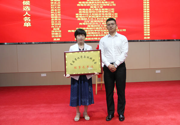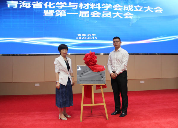 嚴(yán)貴成與王敏為青海省化學(xué)與材料學(xué)會(huì)揭牌