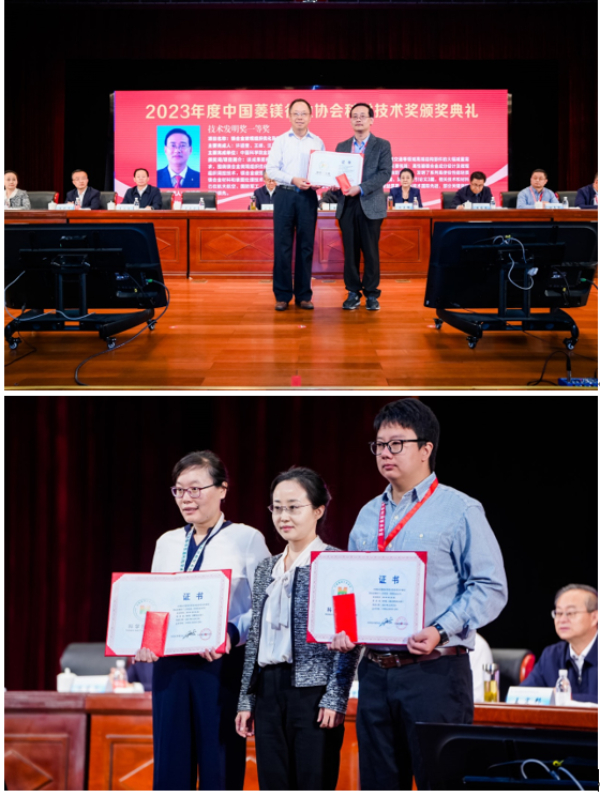 王定邦、吳志堅(jiān)共同為青海柴循鹽湖產(chǎn)業(yè)研究有限公司揭牌,吳志堅(jiān)、李穎虹分別為2023年度中國菱鎂協(xié)會科學(xué)技術(shù)獎技術(shù)發(fā)明獎一等獎和青年科技獎獲得者頒發(fā)證書。