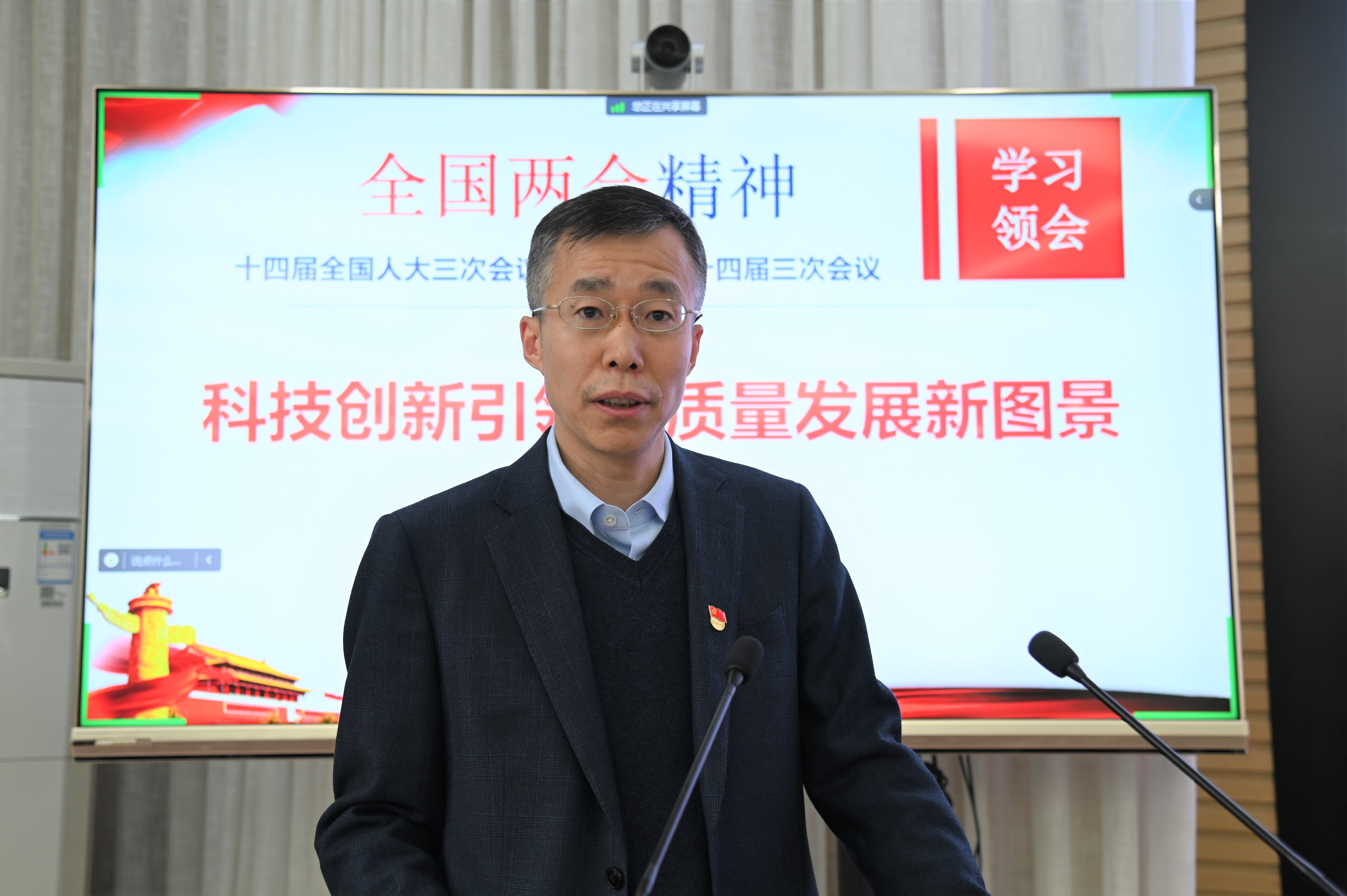 會議邀請全國政協(xié)委員、中國科學院近代物理研究所副所長、國家重大科技基礎設施項目強流重離子加速器總工程師楊建成研究員作《科技創(chuàng)新引領高質(zhì)量發(fā)展新圖景》領學報告,傳達學習了習近平總書記重要講話精神和全國兩會精神,結合科研創(chuàng)新實踐,就進一步強化使命擔當、推動高水平科技自立自強暢談了思考與體會。