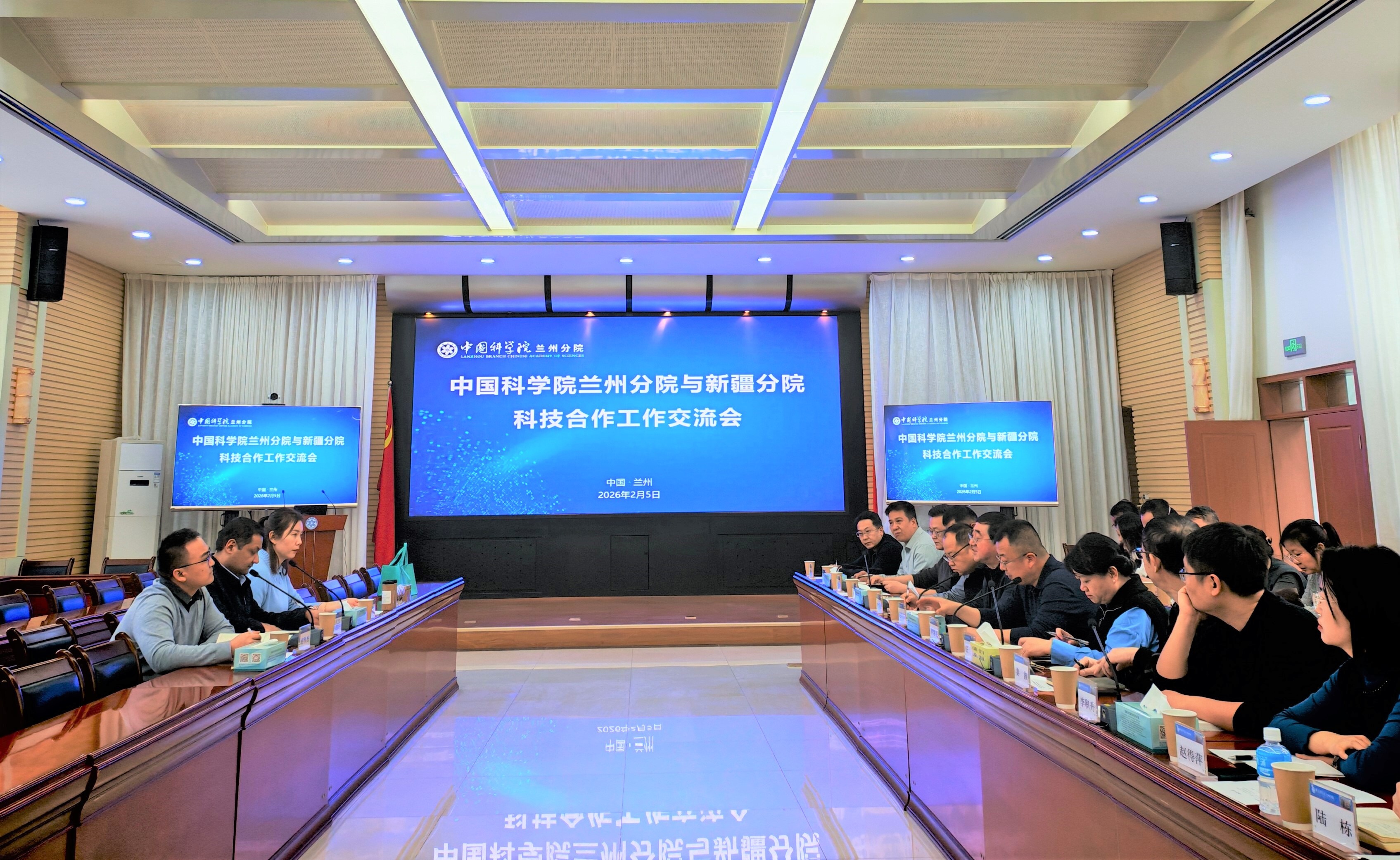 趙培慶對(duì)新疆分院一行到蘭州分院對(duì)接交流表示歡迎,并就蘭州分院落實(shí)院工作要求、開展高質(zhì)量院地合作、強(qiáng)化知識(shí)產(chǎn)權(quán)規(guī)范管理等工作做簡(jiǎn)要介紹。他表示,2026年是我院加快搶占科技制高點(diǎn)、全面實(shí)現(xiàn)“四個(gè)率先”進(jìn)入決勝?zèng)_刺階段的第一年,希望雙方進(jìn)一步深化落實(shí)2026年度院工作會(huì)議精神,圍繞“十五五”規(guī)劃編制落實(shí)、重大科研平臺(tái)建設(shè)、重大科技任務(wù)爭(zhēng)取和組織實(shí)施、人才交流等方面強(qiáng)化合作交流,充分展現(xiàn)國(guó)家戰(zhàn)略科技力量主力軍的使命擔(dān)當(dāng),為建設(shè)科技強(qiáng)國(guó)做出更大貢獻(xiàn)。