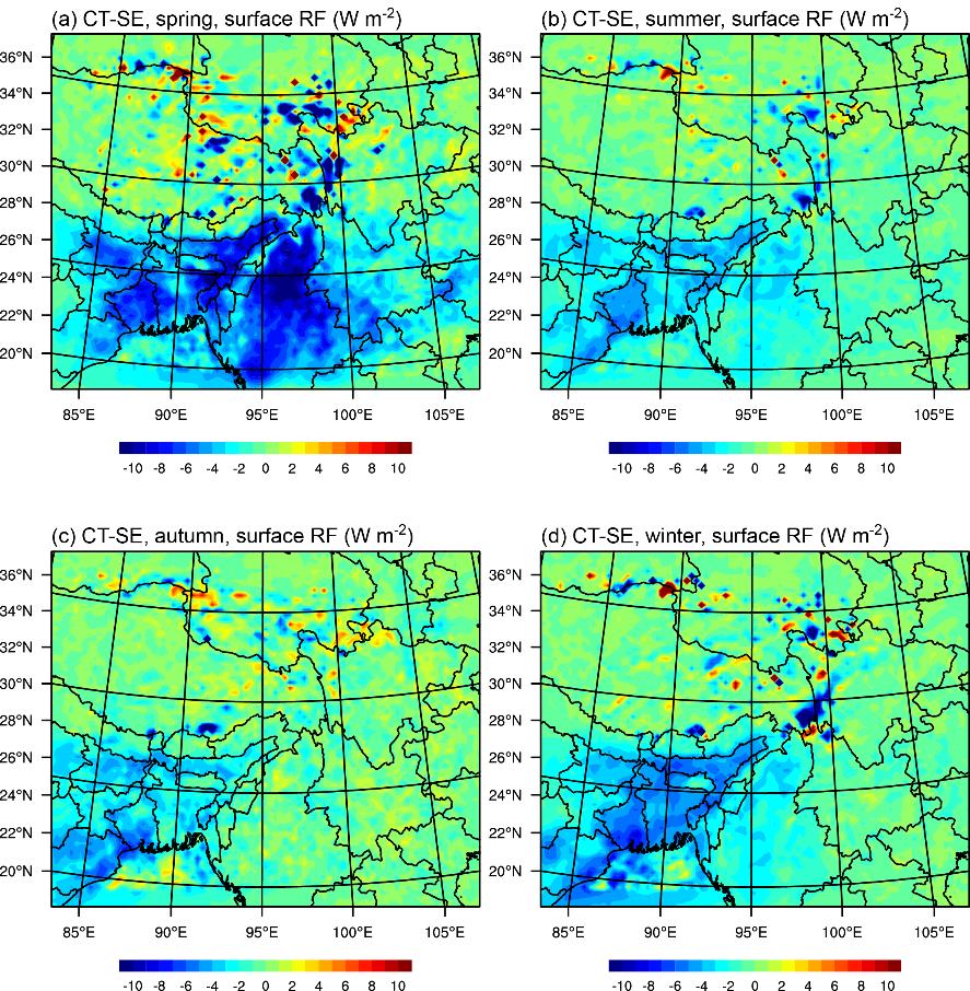圖2跨境輸入黑碳在研究區(qū)大氣層產(chǎn)生的輻射強(qiáng)迫