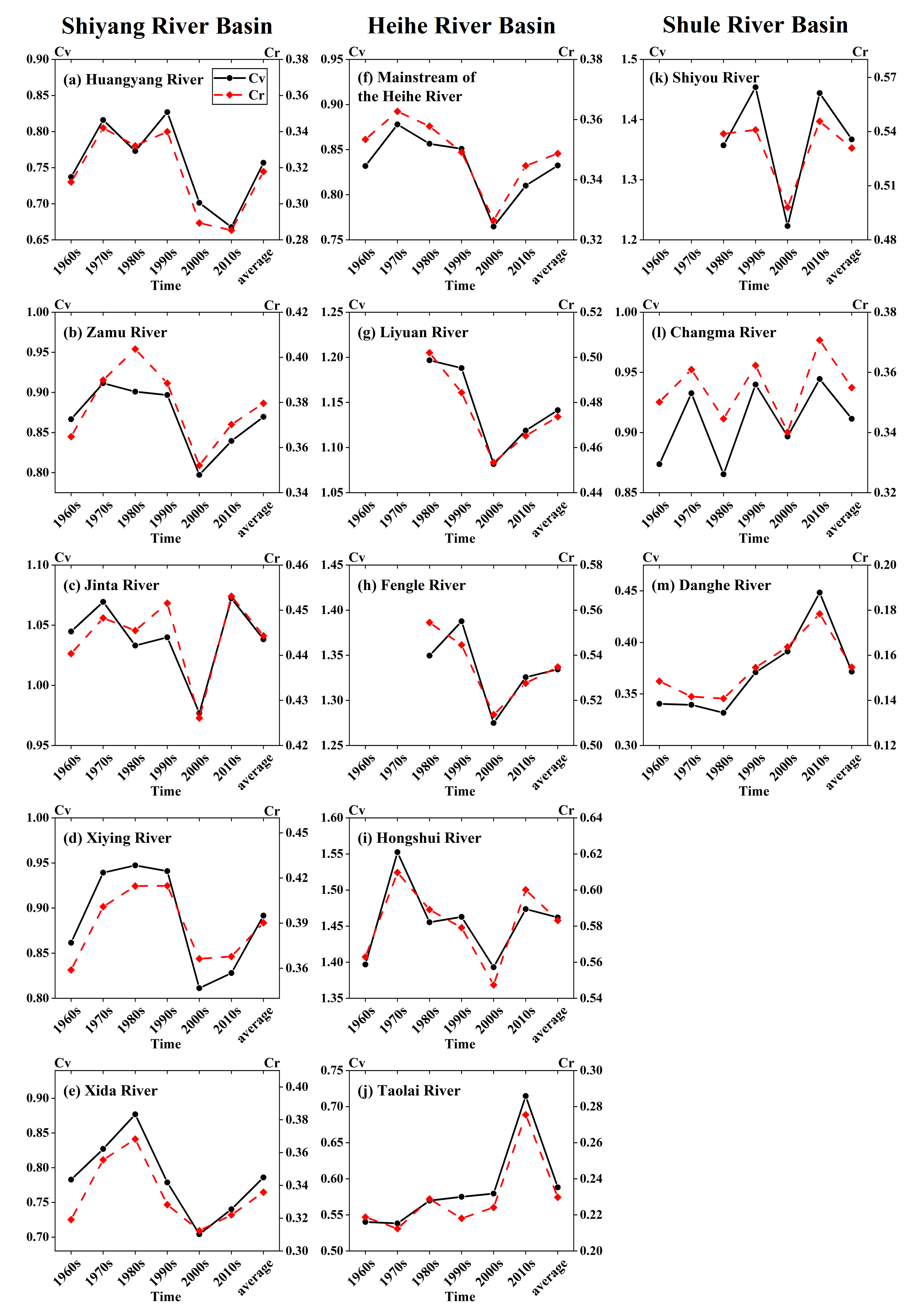 由于氣候變化、人類(lèi)活動(dòng)和下墊面的綜合影響,內(nèi)陸河流域出山徑流的響應(yīng)復(fù)雜多樣,年內(nèi)分配格局具有顯著的時(shí)空異質(zhì)性,部分河流枯水期徑流增加,部分河流峰值時(shí)段后移等,嚴(yán)重影響了河川徑流的發(fā)電、灌溉和生態(tài)文化價(jià)值功能,增加了水利調(diào)控工程的壓力。因此,探究出山徑流長(zhǎng)時(shí)間序列年內(nèi)分配變化和空間差異,有助于流域水資源的規(guī)劃與管理,并為未來(lái)區(qū)域水資源的變化預(yù)測(cè)提供依據(jù)。