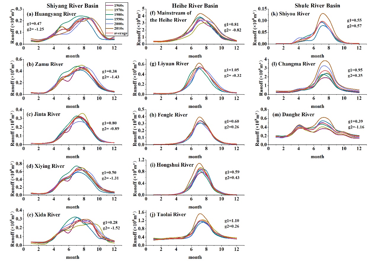 該成果以The changes in the annual distribution of mountain runoff during the period of 1965–2018 in Hexi Corridor,?northwest China為題發(fā)表于愛(ài)思唯爾旗下期刊Research in Cold and Arid Regions。