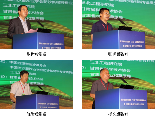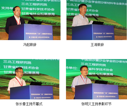 大會由中國地理學(xué)會沙漠分會、中國治沙暨沙業(yè)學(xué)會防沙新材料專業(yè)委員會、三北工程研究院共同主辦,甘肅省科學(xué)技術(shù)協(xié)會、甘肅省林業(yè)和草原局支持,中國科學(xué)院西北生態(tài)環(huán)境資源研究院、干旱區(qū)生態(tài)安全與可持續(xù)發(fā)展重點(diǎn)實(shí)驗(yàn)室、甘肅省科學(xué)技術(shù)期刊學(xué)會和《中國沙漠》編輯部共同承辦。西北研究院黨委書記張長春主持開幕式。