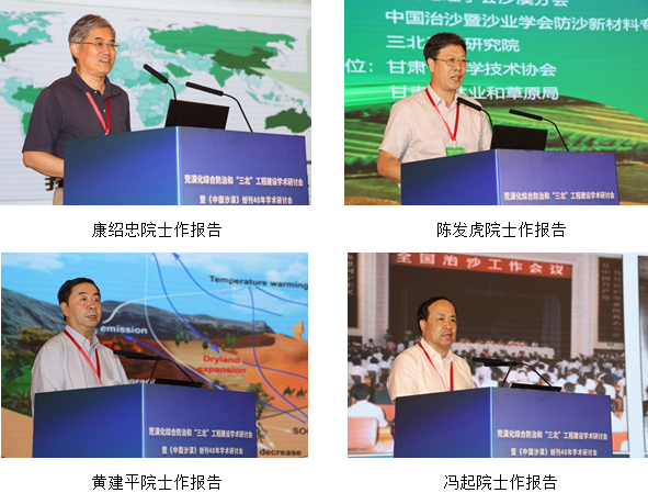 研討會以“荒漠化綜合防治和‘三北’工程建設(shè)”為主題,旨在深入學(xué)習(xí)貫徹落實(shí)習(xí)近平總書記關(guān)于加強(qiáng)荒漠化綜合防治和推進(jìn)生態(tài)工程建設(shè)重要講話精神,推動山水林田湖草沙一體化保護(hù)和系統(tǒng)治理,總結(jié)和交流相關(guān)研究成果,促進(jìn)人與自然和諧共生。大會邀請了丁一匯、姚檀棟、侯立安、鄭曉靜、康紹忠、陳發(fā)虎、黃建平、馮起、方小敏、朱教君等10位院士和王濤、李新榮、楊小平、董治寶、陳亞寧、鹿化煜、屈建軍、楊文斌等8位專家作主題報(bào)告,并組織了14個(gè)分論壇的專題報(bào)告。南志標(biāo)、賴遠(yuǎn)明、楊志峰院士參會。康世昌、曹廣超、盧琦、李廣、勾曉華、楊興國分別主持大會主題報(bào)告。與會專家學(xué)者圍繞荒漠化綜合防治和“三北”工程建設(shè)的新理念、新技術(shù),深入探討了荒漠化地區(qū)氣候變化與生態(tài)系統(tǒng)響應(yīng)、荒漠生態(tài)修復(fù)與治理、全球氣候變化對西北暖濕化趨勢的影響等前沿問題。