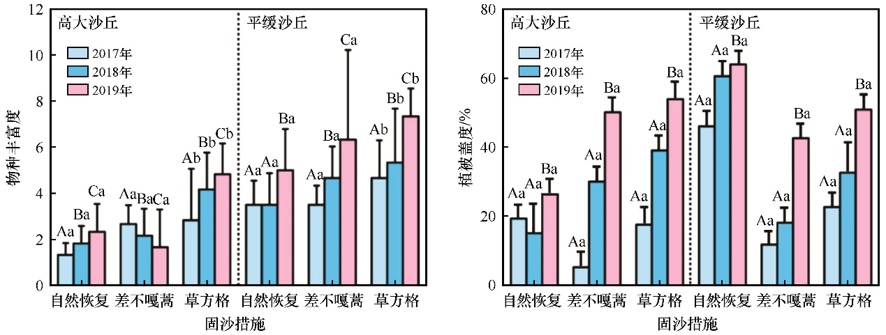 圖1 固沙措施對沙丘植被群落特征的影響