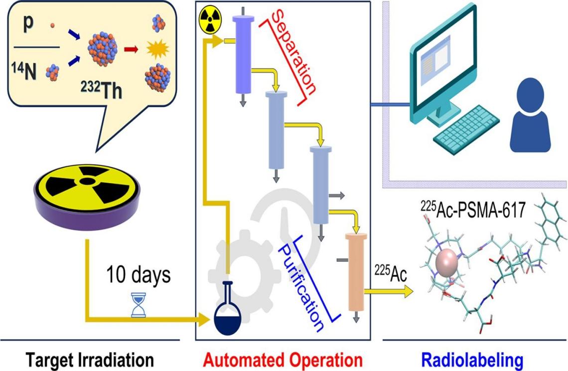 鐳-223(半衰期為11.4天)和錒-225(半衰期為10天)作為兩種極具潛力的阿爾法發(fā)射同位素,由于其獨(dú)特的物理化學(xué)性質(zhì),在小體積腫瘤和多位點(diǎn)轉(zhuǎn)移性癌癥的治療中展現(xiàn)出廣泛的應(yīng)用前景。然而,傳統(tǒng)的鐳-223和錒-225生產(chǎn)方法復(fù)雜且效率不高,難以滿足日益增長(zhǎng)的需求,迫切需要開(kāi)發(fā)出一種高效且自動(dòng)化的制備系統(tǒng)。