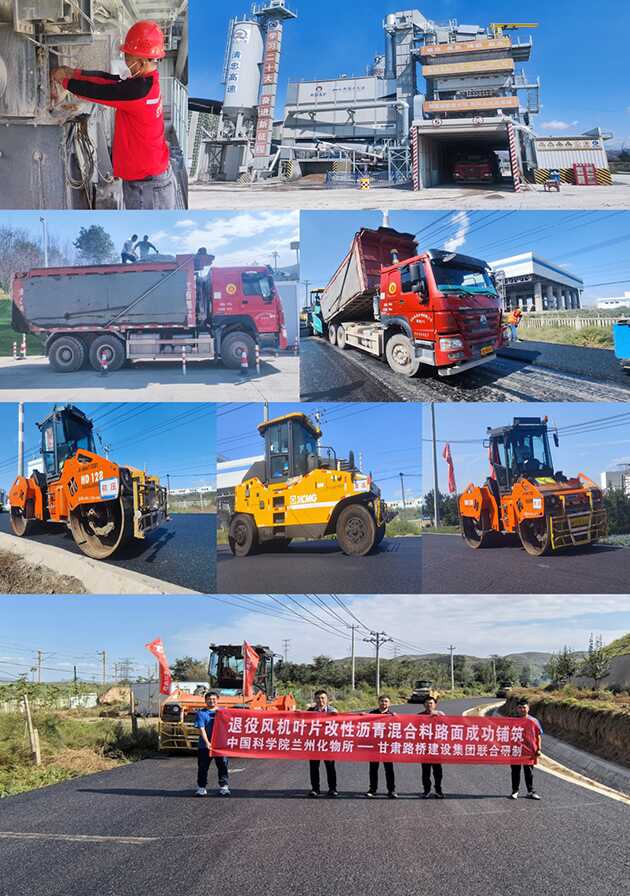 蘭州化物所完成退役風(fēng)機葉片改性瀝青混合料示范應(yīng)用路面鋪筑