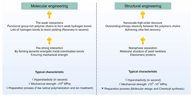 圖3. 構(gòu)建超彈性水凝膠的分子工程和結(jié)構(gòu)工程策略