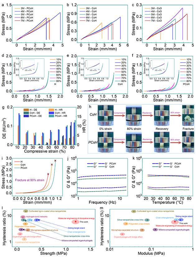 圖4. 耗散能分子工程構(gòu)筑的超彈性水凝膠的實(shí)驗(yàn)驗(yàn)證