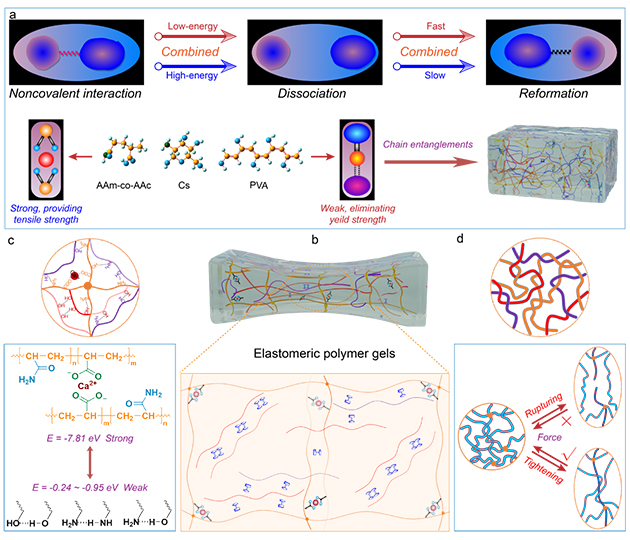 圖2. 耗散能分子工程策略構(gòu)建的超彈性水凝膠