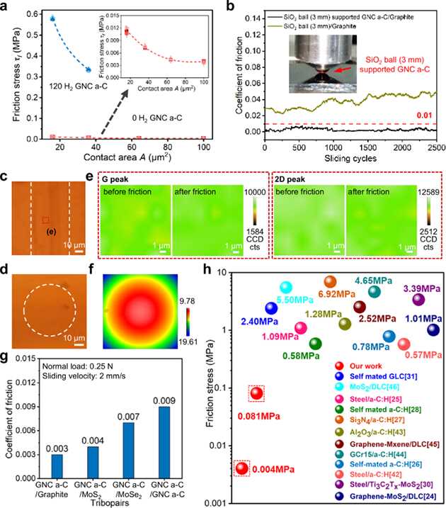 相關(guān)研究成果以“Macroscale,humidity-insensitive,and stable structural superlubricity achieved with hydrogen-free graphene nanoflakes”為題發(fā)表在Nature Communications 15,9197?。?024)上。深圳清華大學研究院博士后李瑞云和蘭州化物所楊興助理研究員為論文第一作者,蘭州化物所王永富副研究員和清華大學馬明副教授為共同通訊作者。