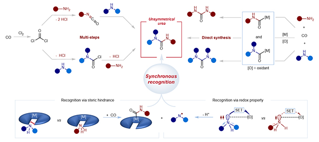 光氣法分步合成與催化羰基化合成非對稱脲;同步識別策略一步合成非對稱脲。