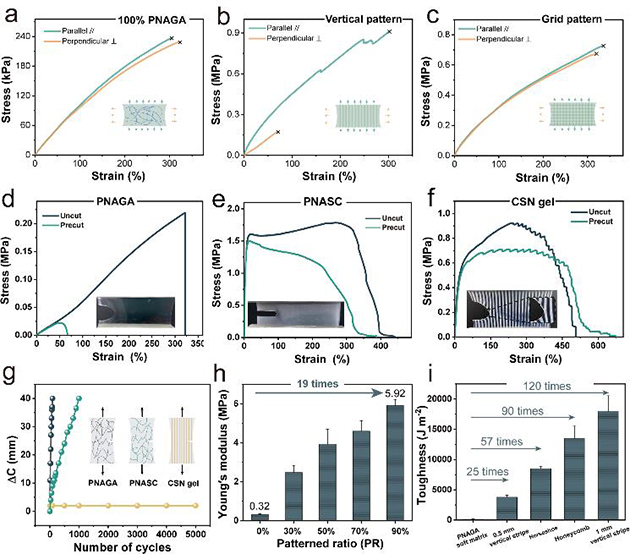 圖2. 圖案化水凝膠的寬范圍機(jī)械性能調(diào)控