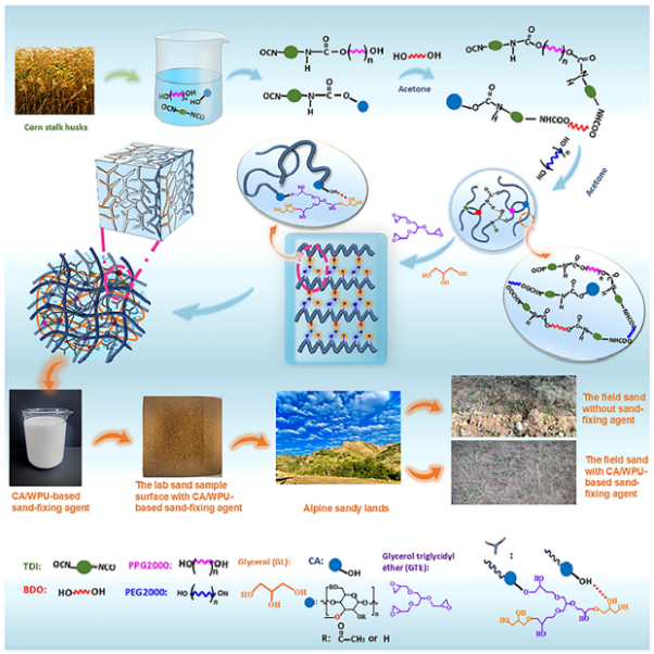 醋酸纖維素/水性聚氨酯/甘油三酯醚/甘油系列防凍固沙劑的合成機(jī)理