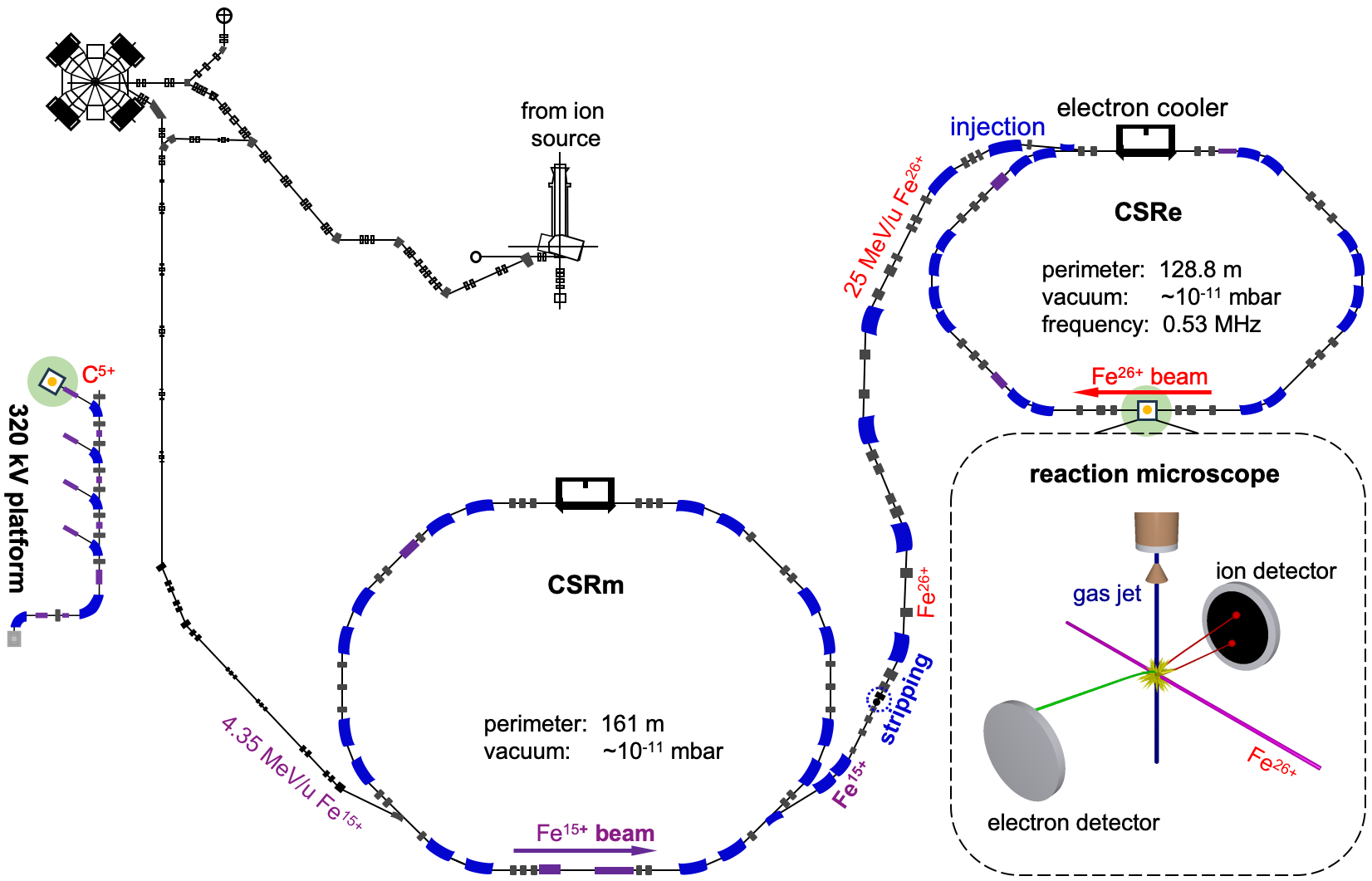 圖1:蘭州重離子加速器大科學(xué)裝置和反應(yīng)顯微成像譜儀示意圖(圖源/近代物理所)