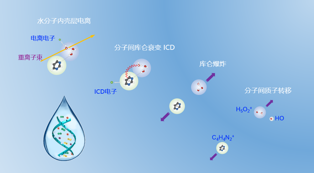 圖2:重離子輻照誘發(fā)分子間級連衰變示意圖 (圖源/近代物理所)