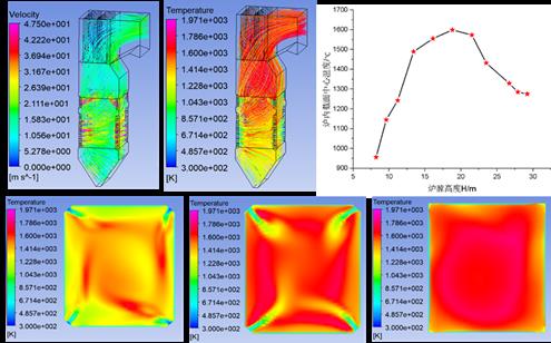 近期,團隊在華能蘭州西固熱電有限公司和西安熱工研究院的大力支持下,首先完成了165MW機組的數(shù)值模擬,結果表明,四角切圓型鍋爐爐內燃燒煙氣溫度分布曲線呈現(xiàn)正態(tài)-拋物線狀態(tài),中間燃燒區(qū)域溫度高,爐底及爐膛出口溫度偏低,最高燃燒溫度始終分布在主燃燒與 SOFA之間,因此重點噴涂區(qū)域為主燃燒區(qū)域和 SOFA 區(qū)域。