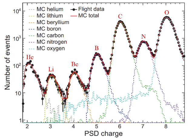 圖1:“悟空”號用來鑒別宇宙射線核素的PSD電荷譜