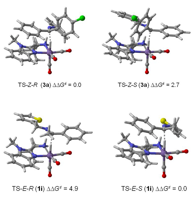 圖2.含雜原子亞胺和雙芳基亞胺的不對(duì)稱氫轉(zhuǎn)移過程的過渡態(tài)模型