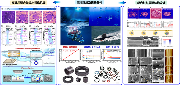 相關(guān)成果以“Carbon fabric/polyetheretherketone composites for deep-sea applications:enhancement of strong-robust interface”和“Response of seawater lubricated fabric-reinforced phenolic resin composites under high hydrostatic pressure”為題分別發(fā)表在Composites Part A: Applied Science and Manufacturing和Polymer Degradation and Stability上。范藝豪博士為論文第一作者,劉昊副研究員和王建章研究員為共同通訊作者。