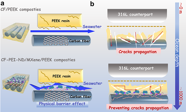 碳纖維織物增強(qiáng)聚合物復(fù)合材料具有優(yōu)異的比模量與比強(qiáng)度,在深海應(yīng)用中展現(xiàn)出巨大潛力。然而,與均相復(fù)合材料相比,其內(nèi)部大尺度的連續(xù)纖維-樹脂界面,在高壓下易成為海水滲透與擴(kuò)散的快速通道,制約了其在深海環(huán)境中的進(jìn)一步應(yīng)用。