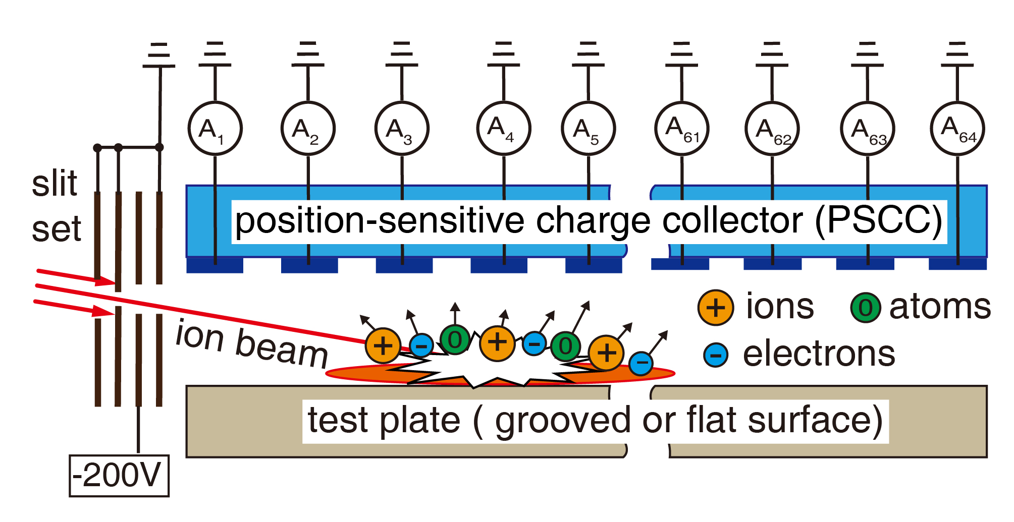 圖1:濺射離子電流分布測(cè)量。二次離子的電荷搬運(yùn)是導(dǎo)致導(dǎo)向電場(chǎng)過(guò)早飽和的主要原因;溝槽結(jié)構(gòu)可有效抑制二次離子的電荷搬運(yùn)