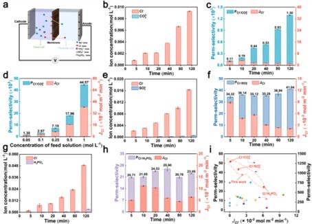圖2 SPES@HMO對(duì)Cl-的特殊選擇性,展現(xiàn)出優(yōu)異的離子篩分性能
