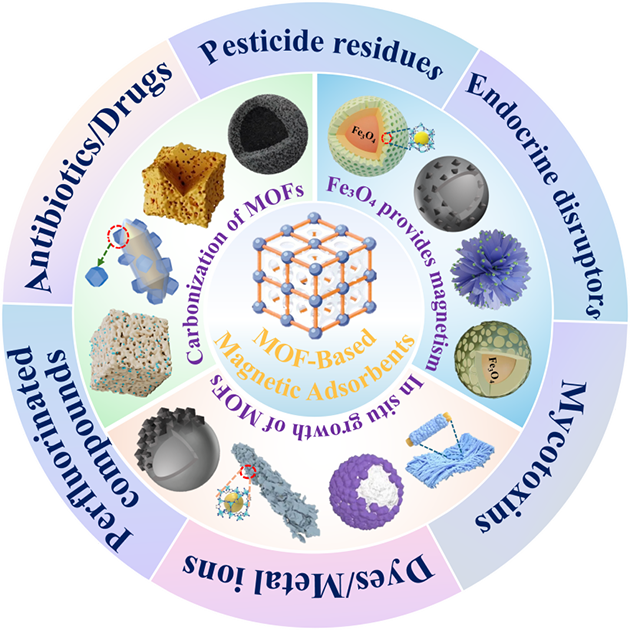 中國科學(xué)院蘭州化學(xué)物理研究所天然藥物與化學(xué)測(cè)量研究中心色譜材料與分離測(cè)量課題組長期聚焦西部資源能源復(fù)雜體系分離分析領(lǐng)域的新材料研發(fā)與新方法學(xué)構(gòu)建,研發(fā)出多種功能化有機(jī)框架復(fù)合材料,應(yīng)用于環(huán)境和食品中各類污染物的萃取富集與吸附去除研究(Analytica Chimica Acta, 2024, 1287: 342112;Microchimica Acta, 2024, 191(2): 90;Environmental Research, 2025, 264: 120319; ACS Applied Polymer Materials, 2025,7,5737-5746; Separation and Purification Technology, 2026, 394, 137454.),為環(huán)境監(jiān)測(cè)與食品安全評(píng)估提供了重要的技術(shù)支撐?;谠诖判訫OF基吸附材料研究中的積累,發(fā)表了關(guān)于磁性MOF基復(fù)合材料吸附污染物的研究進(jìn)展的綜述文章。