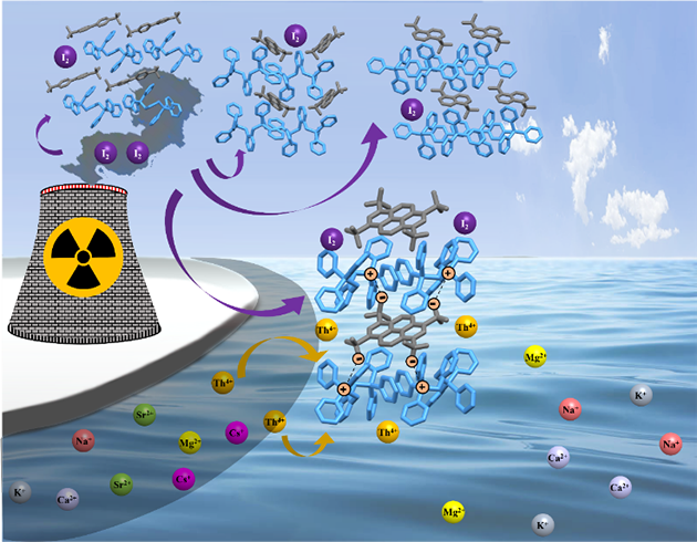 圖4.芳香季鏻離子有機(jī)單晶用于構(gòu)建碘捕獲和Th4+吸附的雙功能平臺(tái)