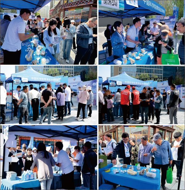 活動現(xiàn)場,28家單位聯(lián)動開展多種類、多元化科普宣傳內(nèi)容,科技感十足的機(jī)器人、航天器模型和多種科研儀器吸引著眾多參展觀眾的目光。依托青海鹽湖所成立的青海省鹽湖地質(zhì)與環(huán)境科研科普基地,通過詳細(xì)策劃和充分動員年輕科研骨干,精心準(zhǔn)備了“青藏高原鹽湖演化、鹽湖成鹽成礦過程、微觀世界中的鹽湖、鹽湖資源高效利用、鹽湖旅游資源、鹽湖與人類生活和最美鹽湖人”等七個宣傳板塊,全面展示了鹽湖科普知識。展臺前觀眾絡(luò)繹不絕,成為本次活動人氣最旺的展臺之一。不同年齡段、不同行業(yè)的參觀群眾通過“看展板、聽講解、摸標(biāo)本”了解和學(xué)習(xí)鹽湖科普知識,并積極參與“鹽湖知識答題”環(huán)節(jié)。兩個小時的活動中共有154人參與掃碼答題互動,觀眾們不僅獲得了小獎品,也在參觀答題過程中學(xué)習(xí)了鹽湖知識,感受了鹽湖的神奇與美麗。