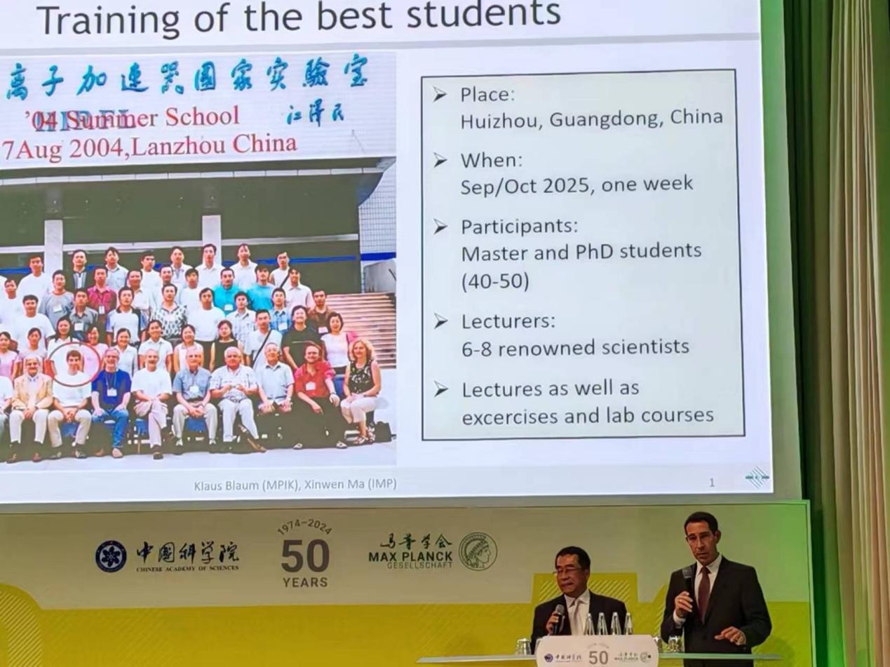 作為中國(guó)科學(xué)院與德國(guó)馬克斯·普朗克科學(xué)促進(jìn)學(xué)會(huì)合作五十周年系列慶?;顒?dòng)的重要組成部分,本次研討會(huì)的雙方代表參加了相關(guān)慶典活動(dòng)。近代物理所和馬普核物理所還將聯(lián)合承辦首屆“中國(guó)科學(xué)院與德國(guó)馬克斯·普朗克科學(xué)促進(jìn)學(xué)會(huì)暑期學(xué)?!?,該暑期學(xué)校預(yù)計(jì)20259月在中國(guó)惠州舉辦。