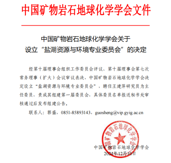 青海鹽湖所牽頭申報(bào)鹽湖資源與環(huán)境專業(yè)委員會獲中國礦物巖石地球化學(xué)學(xué)會批準(zhǔn)設(shè)立