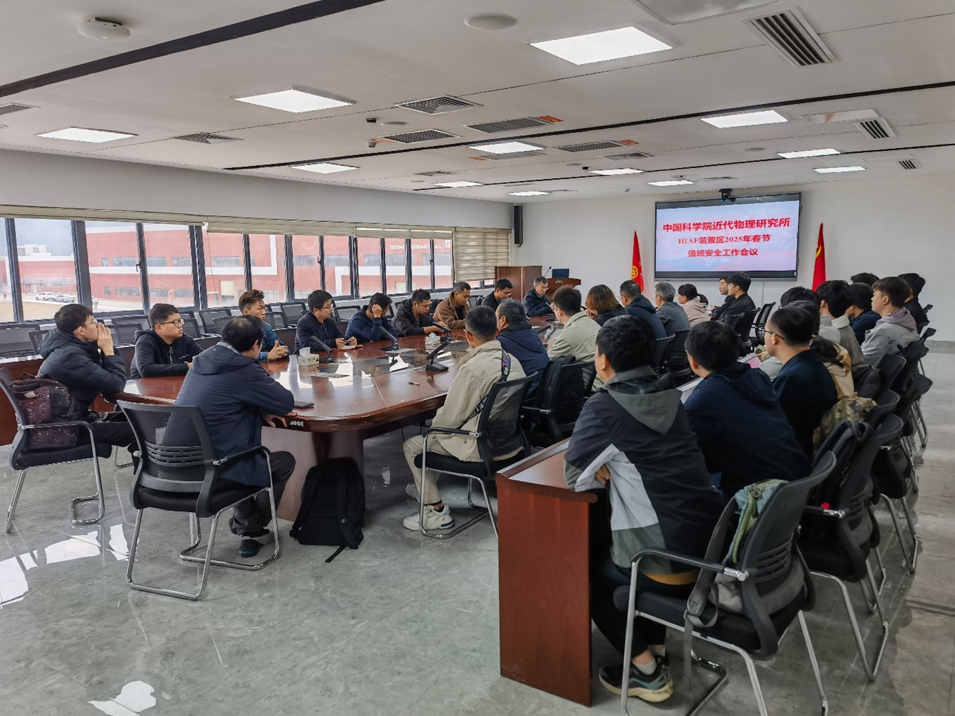 為確保春節(jié)期間研究所各項工作安全有序地推進,1月22日,中國科學(xué)院近代物理研究所副所長楊建成在惠州黃埠園區(qū)召開春節(jié)值班安全工作會議,并現(xiàn)場檢查兩裝置安全工作。