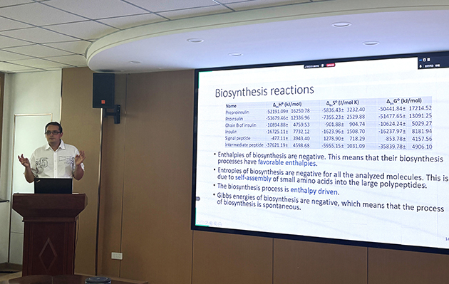 7月3日,塞爾維亞貝爾格萊德大學(xué)化學(xué)、技術(shù)和冶金研究所(ICTM)Marko Popovi?研究員應(yīng)邀訪問中國科學(xué)院蘭州化學(xué)物理研究所,并作了題為“Chemical thermodynamics of biomolecules: Biothermodynamic analysis of biological synthesis of insulin and hemoglobin”的學(xué)術(shù)報(bào)告。