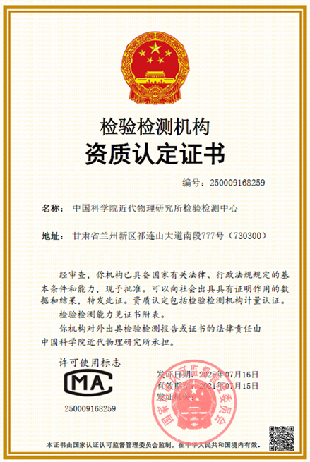 近代物理所檢驗檢測中心通過CMA資質(zhì)認定