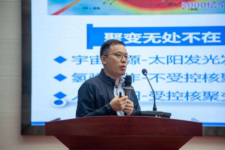 中國科學(xué)院院士、中國核學(xué)會(huì)副理事長、近代物理所趙紅衛(wèi)研究員在蘭州一中作題為《重離子加速器大科學(xué)裝置----探索未知、貢獻(xiàn)社會(huì)》的報(bào)告,介紹核科學(xué)前沿進(jìn)展以及大科學(xué)裝置在科學(xué)研究和社會(huì)發(fā)展中的重要作用。核工業(yè)西南物理研究院院長助理、聚變科學(xué)所所長、中國“環(huán)流三號”總設(shè)計(jì)師鐘武律研究員在西北師范大學(xué)附屬中學(xué)作題為《托起明天的太陽》的報(bào)告,分享了聚變等離子體物理研究與技術(shù)研發(fā)方面取得的創(chuàng)新性成果與技術(shù)突破。中國原子能科學(xué)研究院物理所張英遜研究員在蘭州市第五十一中學(xué)作題為《撕裂原子核-認(rèn)識宇宙中物質(zhì)和能量源泉》的報(bào)告,帶領(lǐng)現(xiàn)場師生走進(jìn)理解宇宙起源與演化的世界。每場報(bào)告后均設(shè)置了互動(dòng)問答環(huán)節(jié),學(xué)生們積極提問,與科學(xué)家進(jìn)行深入交流,現(xiàn)場氣氛熱烈。