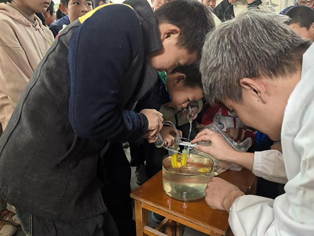活動(dòng)還精心策劃了兩場研究所前沿科學(xué)成果互動(dòng)實(shí)驗(yàn),成為了點(diǎn)燃同學(xué)們科學(xué)熱情的“催化劑”。在“摩擦‘造’星光”實(shí)驗(yàn)中,隨著材料的摩擦、擠壓和拉伸,綻放出一道道絢麗的光芒,同學(xué)們瞪大雙眼,臉上寫滿了興奮與好奇。在“水凝膠仿生章魚觸手抓取器”實(shí)驗(yàn)里,當(dāng)柔軟的水凝膠抓手精準(zhǔn)抓起漂浮的蛋黃和豆腐時(shí),現(xiàn)場響起陣陣驚嘆。實(shí)驗(yàn)結(jié)束后,同學(xué)們圍在科研人員身邊說,“原來科學(xué)這么有趣!”“以前覺得科學(xué)離我們很遠(yuǎn),現(xiàn)在才發(fā)現(xiàn),科學(xué)藏在生活的每一個(gè)細(xì)節(jié)里?!?