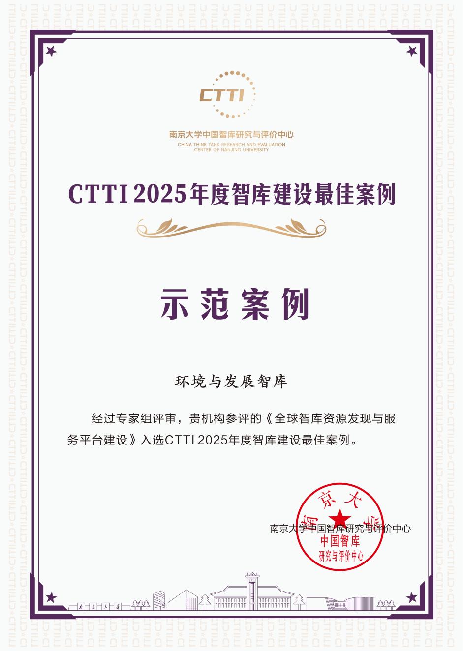 在近期舉辦的“2025新型智庫(kù)治理論壇”上,中國(guó)科學(xué)院西北生態(tài)環(huán)境資源研究院文獻(xiàn)情報(bào)中心環(huán)境與發(fā)展智庫(kù)報(bào)送的“全球智庫(kù)資源發(fā)現(xiàn)與服務(wù)平臺(tái)建設(shè)”成功入選中國(guó)智庫(kù)索引(CTTI)2025 年度智庫(kù)建設(shè)最佳案例 —— 示范案例,并憑借創(chuàng)新性的資源整合模式與落地的服務(wù)成效,成為智庫(kù)服務(wù)領(lǐng)域的典型標(biāo)桿。