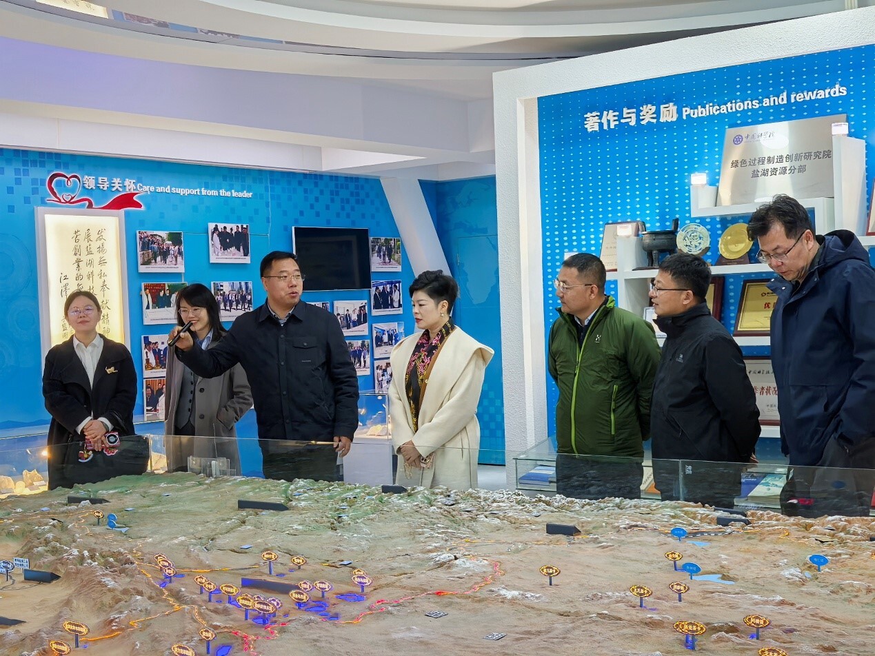調(diào)研組一行首先參觀了鹽湖科技成果展覽室,系統(tǒng)了解青海鹽湖資源開發(fā)利用領(lǐng)域的系列科技創(chuàng)新成果,深入認(rèn)識(shí)青海鹽湖所在推動(dòng)我國鹽湖科技事業(yè)進(jìn)步、支撐地方產(chǎn)業(yè)高質(zhì)量發(fā)展中的重要作用與突出貢獻(xiàn)。