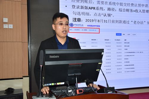 計劃財務(wù)處王利軍、李寶強、呂甲分別就借款、報銷業(yè)務(wù),經(jīng)費認領(lǐng)、轉(zhuǎn)撥、調(diào)賬業(yè)務(wù)及發(fā)票預開及核銷業(yè)務(wù)進行培訓,并就財務(wù)模塊出現(xiàn)的常見問題作了解答。